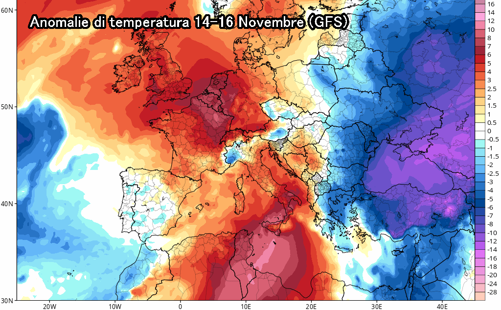 Le ultime simulazioni del modello americano GFS propongono anomalie piuttosto ragguardevoli per metà novembre: si ipotizzano temperature di almeno 5 o 7 ° al di sopra delle tipiche medie del periodo, il che corrisponderebbe a valori massimi di circa 21 o 23 ° su molte località di Puglia, Basilicata, Calabria e Sicilia.