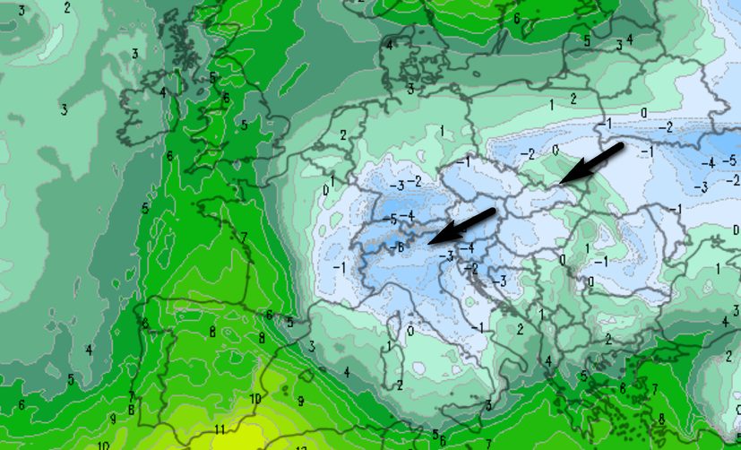 L’anticiclone vacillerà a fine mese per un duplice attacco, da est e da ovest, anche se c’è sempre qualche modello matematico che fino all’ultimo mostra indecisione su questa manovra invernale. L’azione di smantellamento dell’alta pressione comincerebbe venerdì 29 novembre, con una manovra da est, pronta a determinare una significativa flessione delle temperature, soprattutto in montagna e a scavare un tunnel di collegamento con le correnti perturbate atlantiche. Ecco la mappa che lo testimonia: