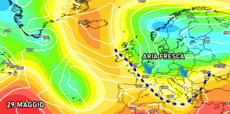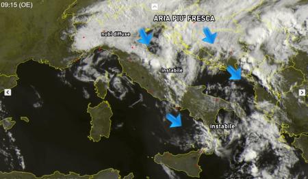 In queste ore l’aria fresca sta avanzando verso sud e porterà un calo termico in giornata piuttosto importante anche sul Meridione.