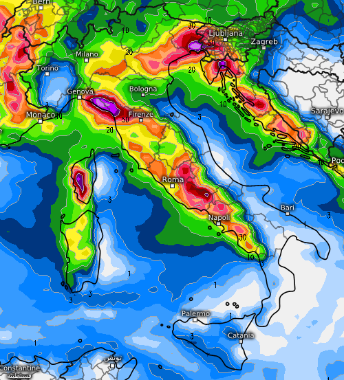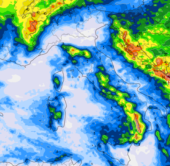 Se comunque passasse questa linea perturbata ecco le precipitazioni che potrebbero verificarsi su scala nazionale: