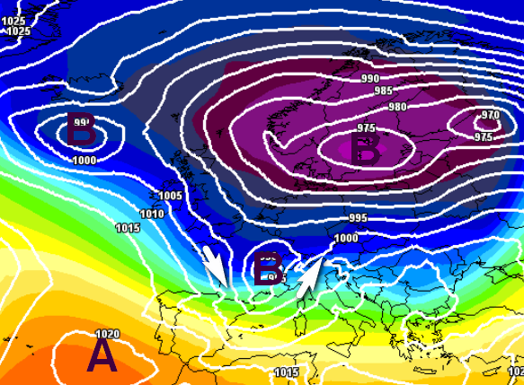 Il merito (o la colpa) sarà di una saccatura di origine artica che scenderà sin quasi alle nostre latitudini, determinando il passaggio di due impulsi perturbati, il primo preceduto da correnti umide da WSW che favoriranno piogge e rovesci lungo le regioni tirreniche.
