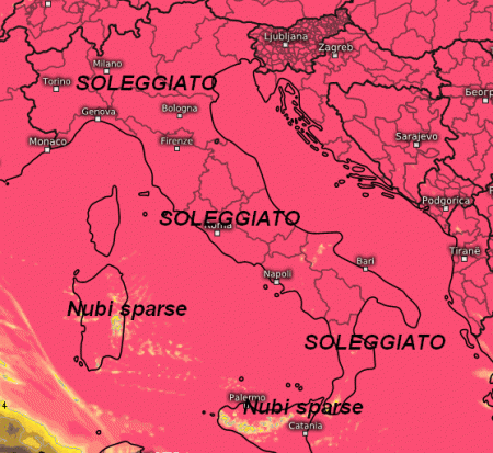 C’è davvero poco da dire. A parte un po’ di nubi tra la Sardegna, la Sicilia e la Calabria senza piogge, sul resto d’Italia praticamente non avremo nubi. Temperature in aumento dopo una mattinata ancora fredda su molte regioni. Ancora ventilazione orientale, ma in attenuazione.