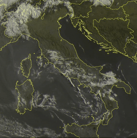 Lo spaccato dell’Italia visto dal satellite questa mattina mostra cieli non completamente sgombri da nuvolosità: