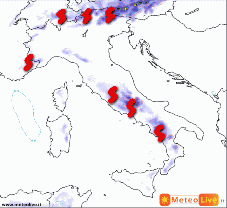 Ancora rischio di temporali pomeridiani sulle Alpi e sull’Appennino centro-meridionale con basso rischio di sconfinamenti lungo le coste. Bel tempo e caldo nel complesso sopportabile altrove.