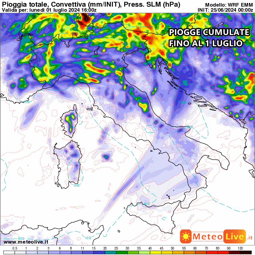 Lunedì 1 Luglio: insistono acquazzoni e temporali al nord, in estensione al centro. Stabile e gran caldo al sud. Più gradevole altrove.
