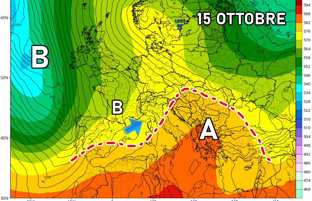 Non sarà una pausa molto lunga! Già da martedì 15 Ottobre diventa sempre più probabile il transito di una nuova piccola ma insidiosa perturbazione atlantica. Questa risalirà dal Mediterraneo occidentale caricandosi di umidità ed energia, pronta ad arrecare un severo guasto su gran parte del centro e del nord. Insomma le solite regioni dovranno metter mano agli ombrelli.