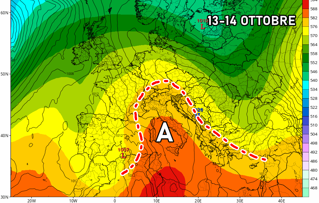Domenica 13 Ottobre: anticiclone su tutto lo Stivale, temperature in aumento specie in alta quota.