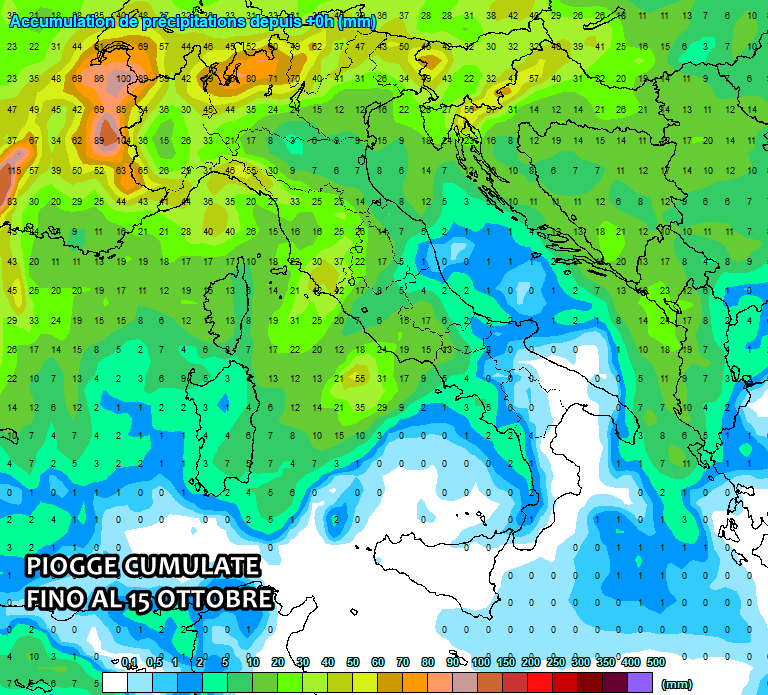 Tutte le piogge cumulate fino al 15 Ottobre: