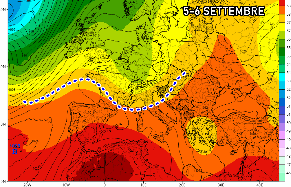 Gli ultimi aggiornamenti mostrano un potenziale passaggio perturbato sulle regioni del Nord tra il 5 e il 6 settembre, favorendo nuovamente la formazione di forti temporali, con nubifragi e locali grandinate.