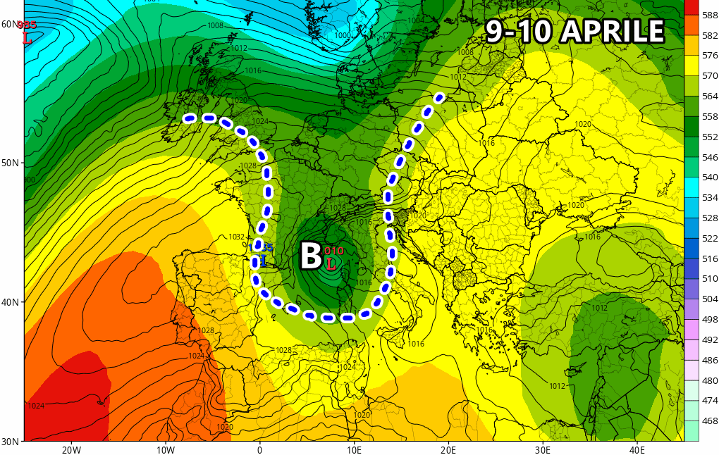 Mercoledì 10 Aprile: piogge che persistono al nord, ciclone in formazione nei pressi della Sardegna. Temporali nelle zone interne del centro. Caldo in ritirata.