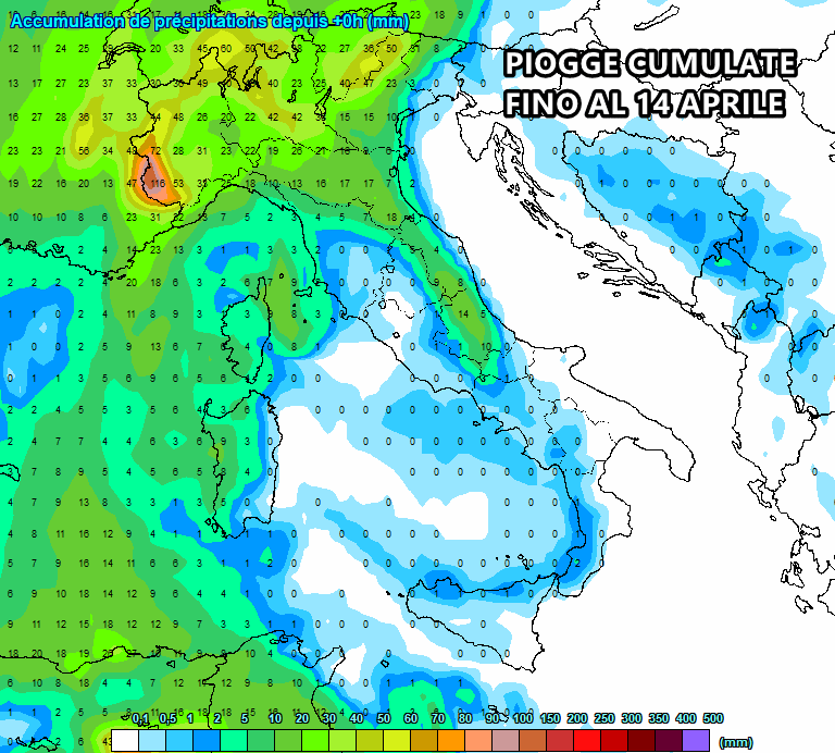 Le piogge cumulate fino al 14 Aprile: