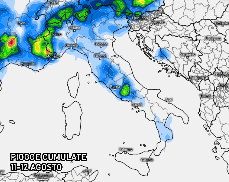 Chiaramente è ancora troppo presto e prematuro per capire quali regioni saranno più colpite dai temporali, ma secondo le ultime indicazioni sembra che l’instabilità possa crescere sensibilmente a partire da lunedì 11 agosto. Saranno temporali isolati ma localmente potenti, in grado di generare nubifragi improvvisi, grandinate e colpi di vento. Chiaramente montagna e colline sarebbero le zone maggiormente indiziate per essere colpite da questa instabilità pomeridiana e serale, ma localmente anche la Val padana potrebbe fare i conti con improvvisi temporali dopo giornate molto calde e umide.