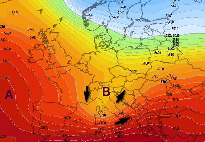 • Saccatura atlantica: depressione in quota con aria più fresca e instabile proveniente da ovest.