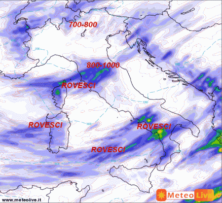 Acquazzoni e temporali probabili su tutto il centro e gran parte del meridione con quota neve in calo sull’Appennino settentrionale attorno a 800-1000 metri. Possibili grandinate, vento forte e mareggiate lungo le coste di ponente e sulla Sardegna. Da verificare anche un coinvolgimento del settentrione, specie il nord-est e la Liguria, con neve sopra i 700-800 metri sull’arco alpino orientale. Temperature in calo al nord e al centro, stazionarie al sud.