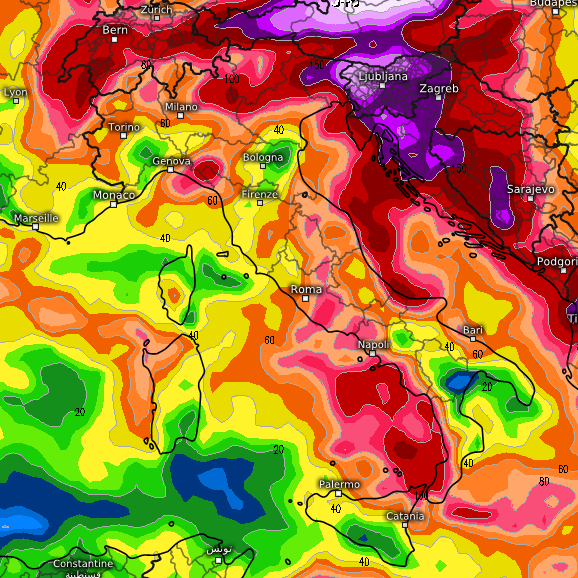–Giovedì 12 saranno ancora attivi molti rovesci o temporali sulle Venezie e l’Emilia-Romagna, in parte anche sull’est della Lombardia, mentre sul nord-ovest si farà strada il Favonio a ripulire il cielo. Contemporaneamente peggiorerà il tempo sulla Toscana con forti temporali su Apuane, Pistoiese e Fiorentino. Rovesci e temporali colpiranno poi anche la Sardegna, l’Umbria ed il Lazio.