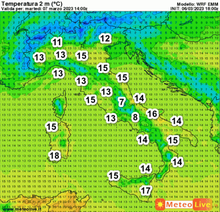 Queste sono le temperature attese in Italia alle ore 15 di oggi, martedi 7 marzo: