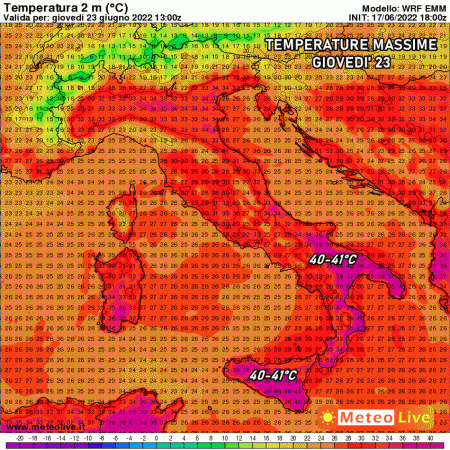 Potrebbero rivelarsi due giornate davvero pesanti per quel che riguarda il caldo: dalle ultimissime emissioni modellistiche sembra sempre più probabile che possano essere sfiorati i 40-41°C nelle aree interne.
