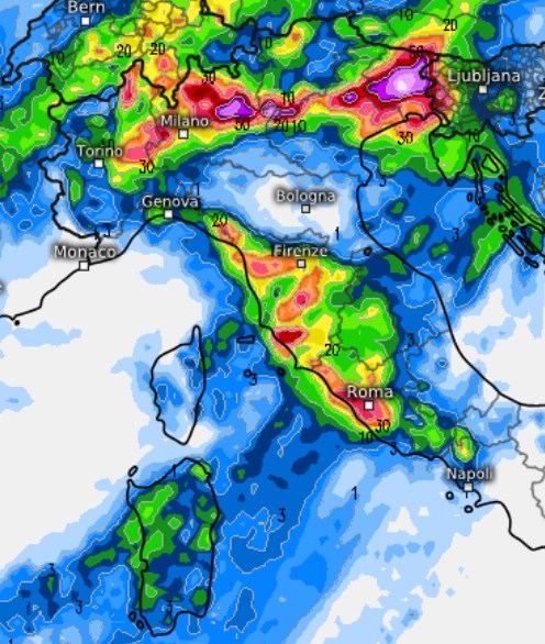 Il forte contrasto tra i venti tiepidi e umidi di scirocco e le correnti più fresche atlantiche causerà lo sviluppo di altri temporali, non solo nelle giornate di mercoledì e giovedì, ma anche nella giornata di venerdì 29 agosto.
