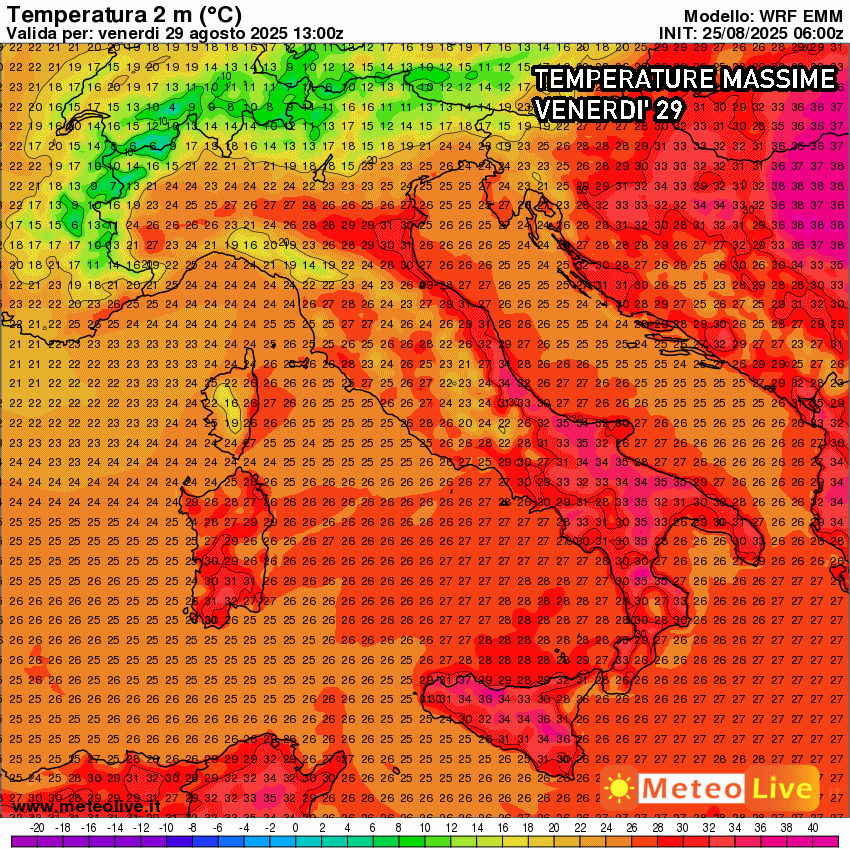 Le temperature aumenteranno già da metà settimana, ma l’apice del caldo è atteso attorno al 29 agosto, quando le temperature massime potranno raggiungere i 35-36 °C su diverse località dell’entroterra del meridione, dalla Puglia alla Sicilia. Tutto merito dei venti di ostro e scirocco che trasporteranno aria calda nordafricana verso il Mediterraneo. Sarà proprio questa massa più calda e umida a convergere con le correnti fresche provenienti dall’Atlantico, con tutte le conseguenze del caso.