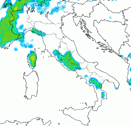 Ritroviamo temporali sulle Alpi occidentali, l’Appennino Ligure, la Corsica, le aree interne tra Lazio e Abruzzo e parte della Calabria. Su tutte le altre regioni tempo nel complesso buono e moderatamente caldo.