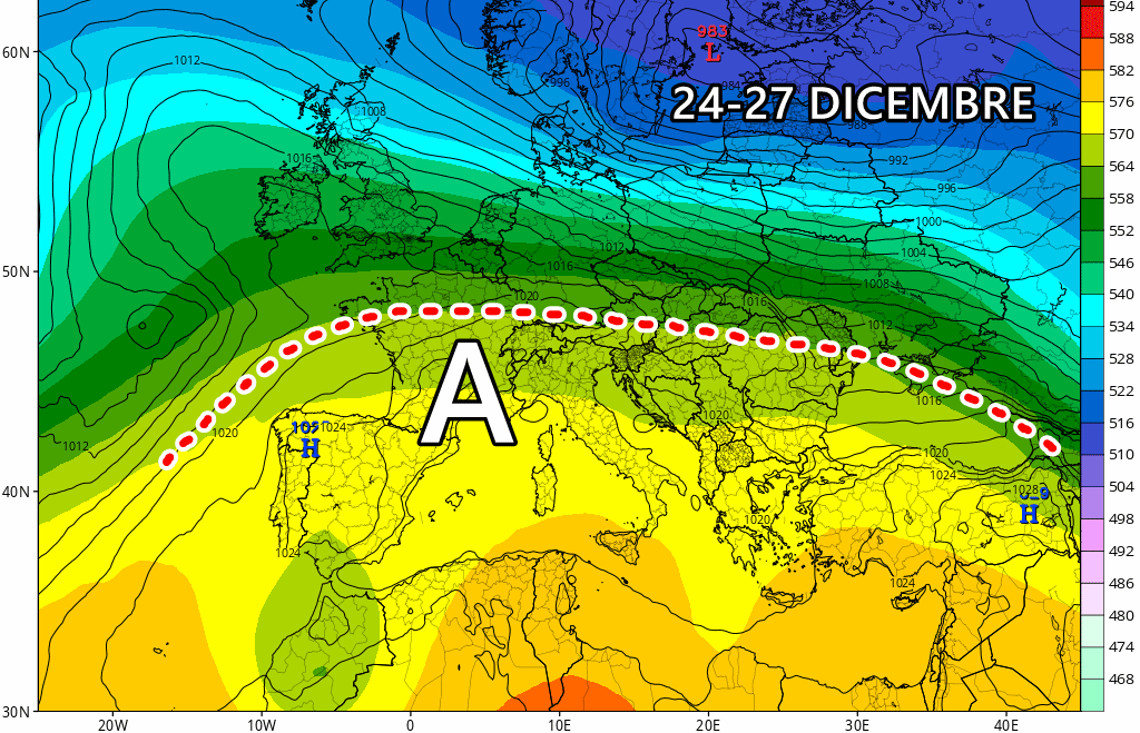 L’anticiclone ha ormai preso pieno possesso dell’Italia e pare proprio che ci farà compagnia per gran parte delle festività natalizie, almeno quelle legate al mese di dicembre. Impossibile avventarci con chiarezza sulla prima settimana di gennaio che ci accompagnerà all’Epifania, tuttavia come annunciato in questo articolo, pare che l’atmosfera possa tornare a movimentarsi proprio col nuovo anno.