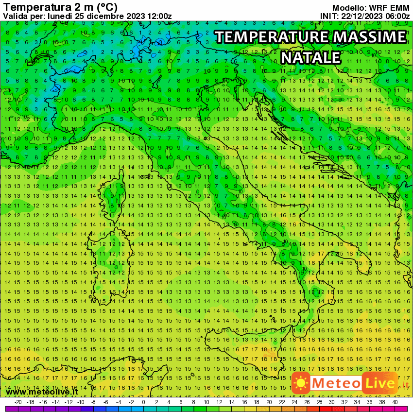 Domenica 24 dicembre: vigilia di Natale con nubi basse sulle regioni tirreniche e nebbie al nord. Poco nuvoloso altrove. Clima gradevole sul medio-basso Adriatico e al sud, con punte di 17°C.