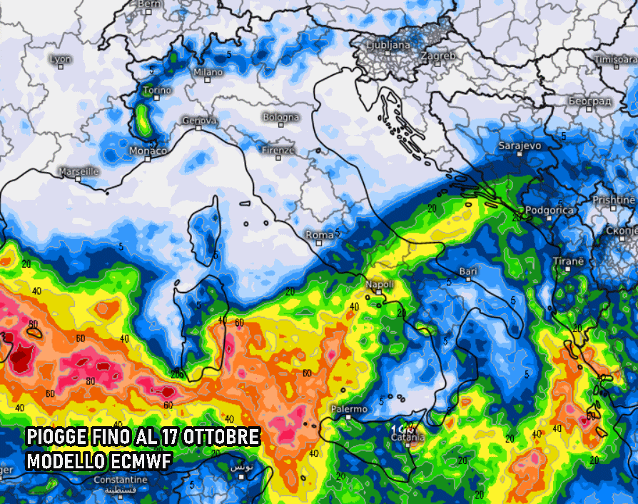 Essa porterà precipitazioni prima in Sicilia e poi, con buona probabilità, entro il 15 ottobre, anche sul resto del Sud. Qualche precipitazione sparsa potrebbe raggiungere anche il Centro e il Nord Italia nel corso della settimana, ma questi dettagli andranno smussati nei prossimi aggiornamenti.