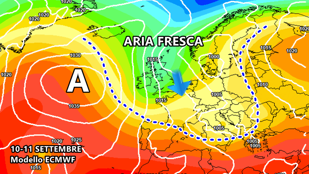 Già oggi pomeriggio il modello americano GFS aveva aperto la strada alla rinfrescata del 9-11 Settembre: