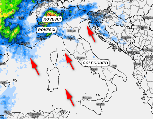 Rovesci sparsi al nord-ovest, specie tra alto Piemonte, alta Lombardia e Liguria centro-occidentale. Tra il pomeriggio e la serata i fenomeni si attenueranno parzialmente soprattutto sulla Liguria. Sul resto d’Italia tempo soleggiato o solcato da nuvolosità medio-alta senza conseguenze. Forte Scirocco specie sul Tirreno.