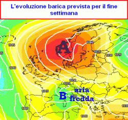 FINE SETTIMANA: lo sbilanciamento progressivo dell’anticiclone verso la Scandinavia favorirà un rientro di correnti fredde da est sul territorio con risvolti perturbati in Adriatico e soprattutto all’estremo sud, isole maggiori comprese e un generale calo delle temperature, più sensibile al nord e al centro. Qualche nevicata si verificherà lungo la dorsale appenninica. Possibili nubifragi sullo Jonio, l’est della Sicilia e della Sardegna.