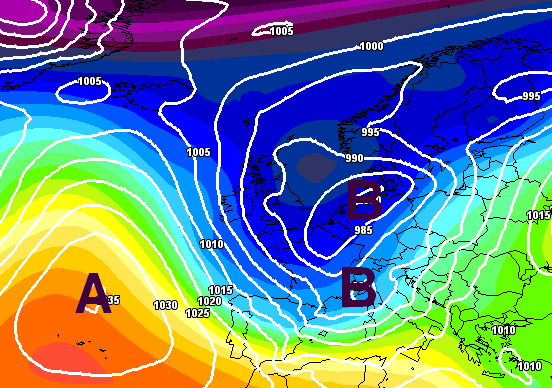 L’aria fredda che sfonderà sulle nostre regioni nel periodo 23-27 febbraio, coinvolgerà soprattutto il settentrione, dove sulle Alpi è atteso un progressivo calo del limite delle nevicate, qui sotto vediamo una carta barica prevista per lunedì 26, la giornata che da giorni viene indicata come quella più papabile per assistere a momenti nevosi anche a quote basse, vediamo perchè: