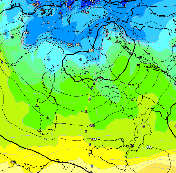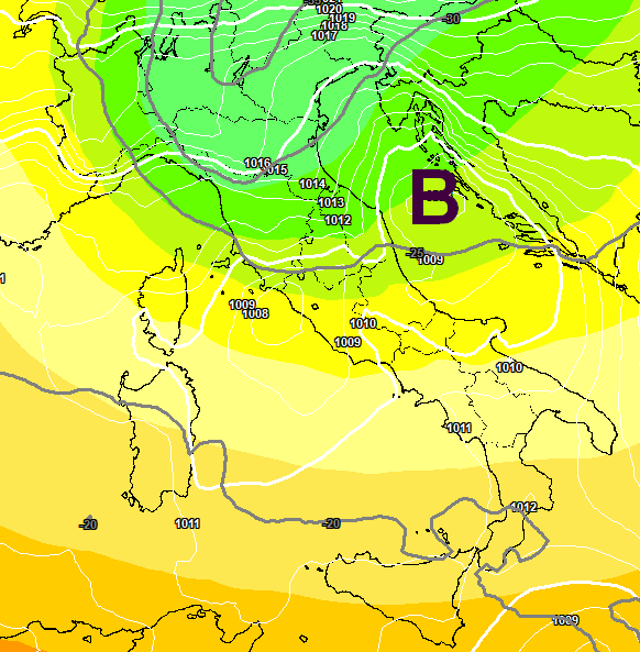 E quel vortice si porta dietro un freddo non indifferente, anche valori di -8°C a 1500m: