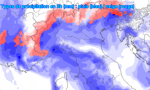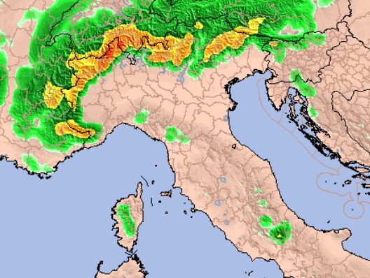 Una massa d'aria decisamente mite impedirà alle precipitazioni di risultare nevose a quote basse ma l'aria fredda che ristagna nelle vallate alpine comunque aiuterà i settori più a nord.