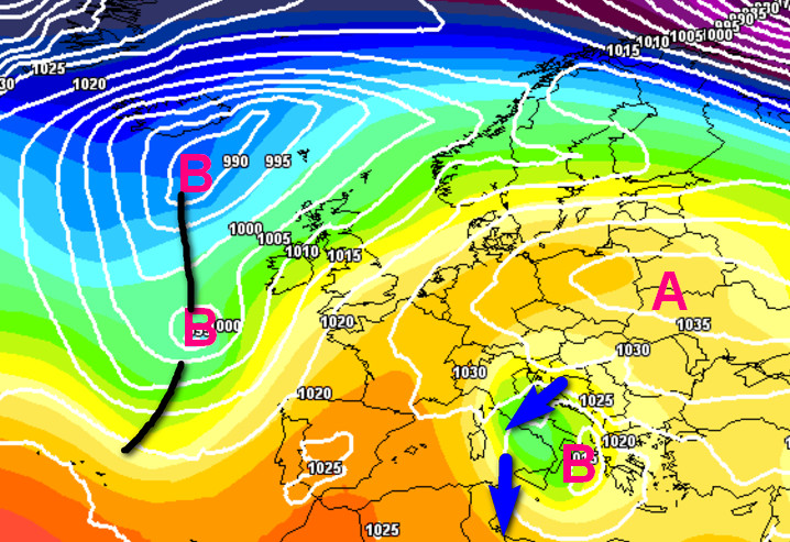 L’alta pressione si disporrà con un massimo sull’Europa orientale, indirizzando correnti fredde da nord-est verso la nostra Penisola. La formazione di una depressione tra lo Ionio e la Grecia farà persistere il maltempo al meridione fino alle prime ore di domenica, mentre determinerà nevicate sull’Appennino centrale oltre i 650-750m e su quello meridionale mediamente al di sopra degli 800-1.100 metri. Al di sotto le precipitazioni risulteranno piovose, più probabili e intense su Abruzzo, Molise, sud Calabria e nord Sicilia, almeno stando agli ultimi aggiornamenti pomeridiani di giovedì 28.