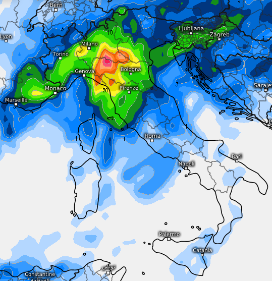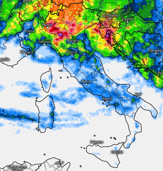 Le correnti in quota si dispongono da nord e le depressioni si preparano ad investire l’Italia dal centro Europa, andando a scavare dei minimi depressionari al suolo che favoriranno temporali molto intensi sul Triveneto in primi (nella mattinata e nel pomeriggio di giovedì 30 maggio) e poi la Lombardia e l’estremo est del Piemonte (tra giovedì sera e venerdì mattina 31 maggio), poi l’Emilia-Romagna e l’alta Toscana entro venerdì mattina 31 maggio:
