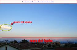 Da Novara si nota la presenza del muro del foehn lungo le Alpi ed anche un classico pesce del favonio in piena pianura. Oltralpe sta transitando un vasto fronte caldo.