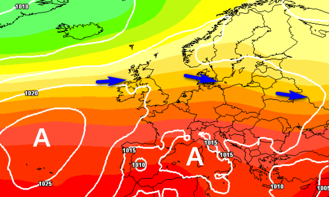 In pratica prevarrebbe il ramo azzorriano dell’anticiclone (meno caldo) rispetto a quello africano (più rovente).
