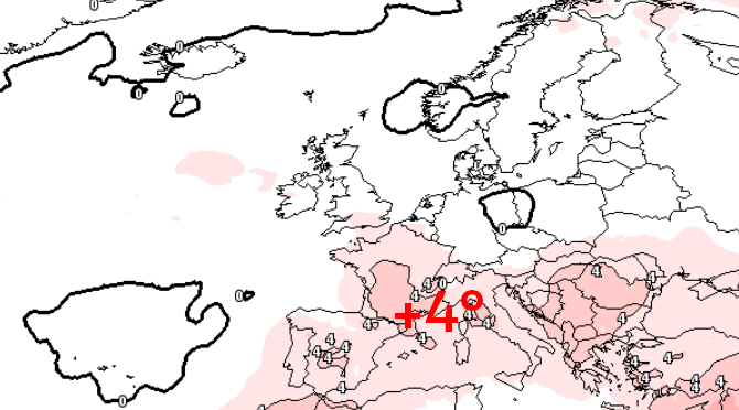 Infatti lo scostamento dalla media termica a 1500m ci sarebbe, risulterebbe importante (+4°C rispetto alla media) ma non estremo: