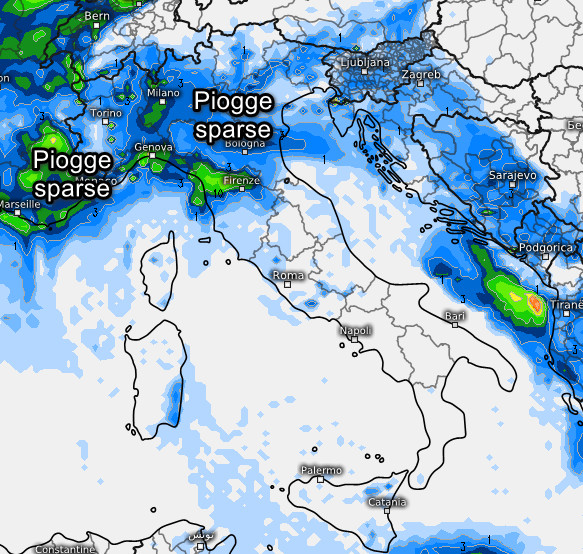Piogge sparse al nord e sulla Toscana con neve sulle Alpi oltre i 1100-1200 metri ed oltre i 1450 metri sull’Appennino settentrionale. Sul restante centro e al meridione tempo asciutto ed abbastanza soleggiato specie al sud. Non farà freddo.