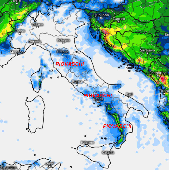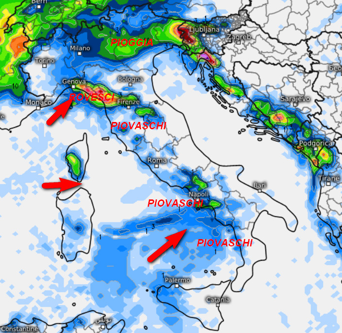 Questa invece è la sommatoria delle precipitazioni attese in Italia nell’arco della giornata di venerdi 10 gennaio: