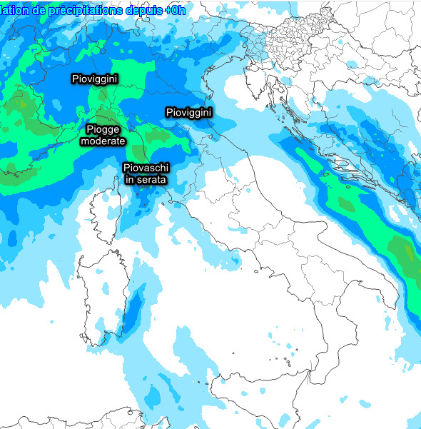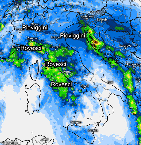 Passiamo al quadro delle piogge previste in Italia nell’arco della giornata di martedi 11 febbraio: