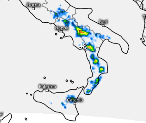 Rovesci di pioggia o temporali saranno comunque possibili (60%) principalmente nelle zone interne e montuose anche sulla provincia di Frosinone, sulla Campania (oltre 800m fra Avellino e Benevento) e sulla Sicilia (fra Catania, Messina ed Enna, con eventuali isolati sconfinamenti lungo la costa orientale).