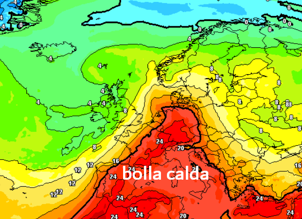 -il rischio di eventi estremi laddove quella lingua calda verrà in qualche modo “bucata” dal temporaneo inserimento di aria più fresca da ovest.
