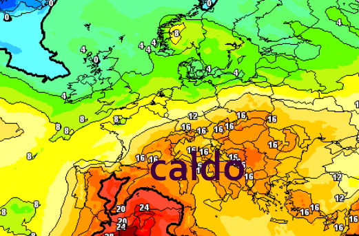 Ecco la massa d’aria calda prevista per domenica 1°C giugno a 1500m sul nostro Paese, si nota l’isoterma dei +16°C a 1500m, di tipo prettamente estivo, anche se non estremo: