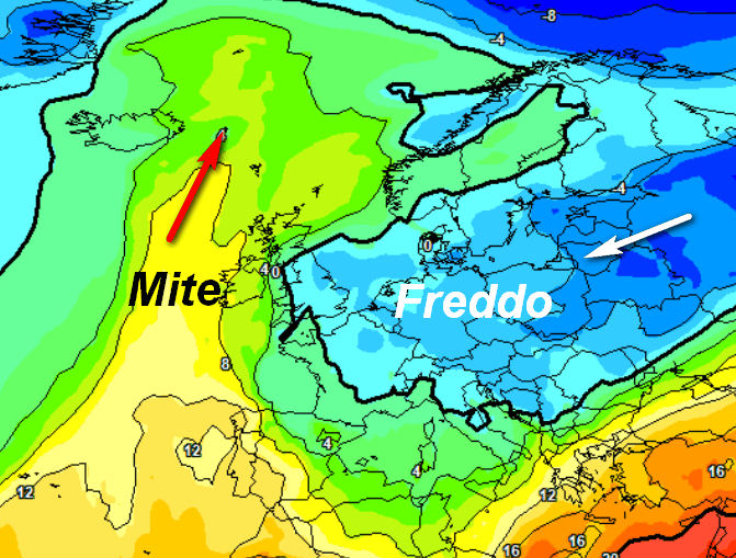 Si nota la percussione delle correnti occidentali che spazzeranno via l’alta pressione dal centro Europa, confinandola più ad est. Da noi arriverebbero piogge sparse ad iniziare dai settori occidentali e dal nord, ma un un contesto non particolarmente freddo. In altre parole, tornerebbe l’autunno classico sulla nostra Penisola, con un clima umido e piovoso. Staremo a vedere.