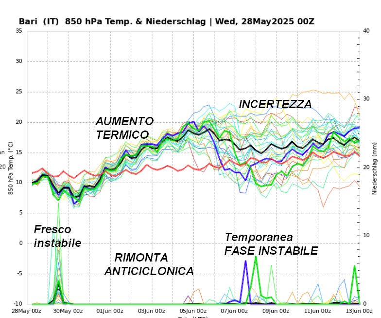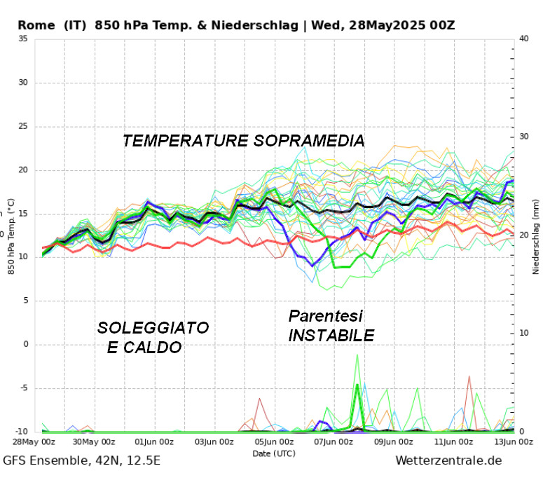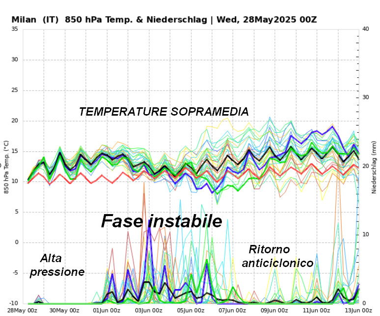 Diamo uno sguardo alla linea di tendenza del tempo al nord, al centro e al sud fino al 13 giugno con il metodo degli spaghetti.
