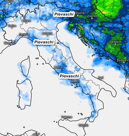 Infine, questa è la situazione attesa in Italia nell’intera giornata di domani, martedi 2 aprile: