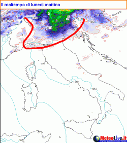 SITUAZIONE: una saccatura collegata ad un minimo di bassa pressione con perno sulla penisola Scandinava tende ad inviare un sistema frontale a ridosso del nostro Paese. Il connubio tra l’effetto sottovento in atto sul golfo Ligure e l’apporto di vorticità in quota da parte del Getto Polare darà luogo all’approfondimento di un minimo secondario che traslerà dal mar Ligure verso l’alto Adriatico. La perturbazione associata investirà con fenomeni temporaleschi est Lombardia, Triveneto, Emilia Romagna, parte della Toscana, Umbria, Marche ed entroterra di Lazio e Abruzzo.