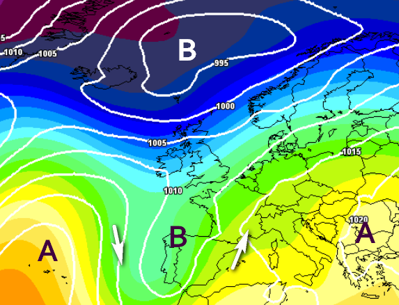 La media degli scenari però, soprattutto del modello GFS, riporta tutti ad una maggiore razionalità. L’affondo potrebbe stentare un po’, rimanendo confinato all’ovest del Continente e relegando ai soli settori occidentali e tirrenici, eventuali piogge, almeno in una prima fase: