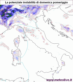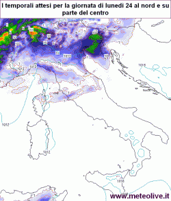 TEMPORALI: da domenica pomeriggio cominceranno a farsi notare su centro-ovest Alpi e parte delle pianure del nord-ovest, in serata anche la costa ligure, lunedì colpiranno un po’ tutto il nord e a macchia di leopardo Toscana, Umbria e Marche. Martedì torneranno a colpire il nord e il centro a partire da ovest ma in forma attenuata.
